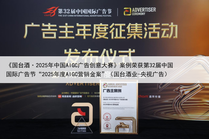 《国台酒·2025年中国AIGC广告创意大赛》案例荣获第32届中国国际广告节“2025年度AIGC营销金案”(国台酒业-央视广告)