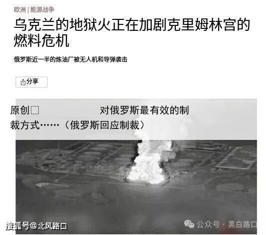 泽连斯基在最近一次采访中表示:“最有效的制裁就是去俄罗斯炼油厂放火,这是旨在削弱莫斯科战斗力的最重要施压手段"俄罗斯能支撑战争的一个重要原因就是其能源经济能为俄罗斯带来大量资金,制裁已经实施三年七个月,有效果但不明显,因为俄罗斯会通过影子船队规避制裁,继续出口石油、石油产品和液化天然气。