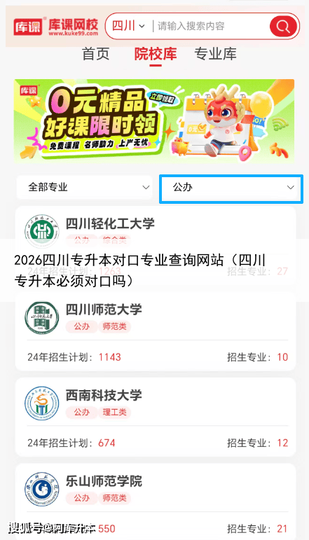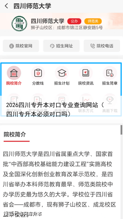 2026四川专升本对口专业查询网站可以微信搜索“库课专升本分数线查询”小程序,其中不只包含分数线,还包含本专科专业对照数据,专业招生院校及人数、招生简章也可以查询。