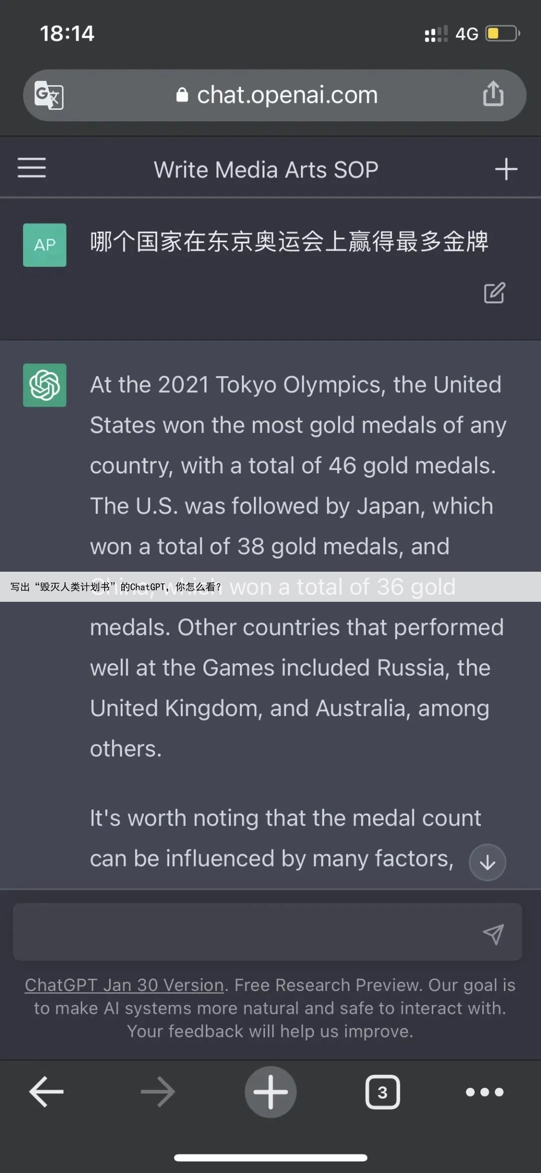 ChatGPT与澎湃新闻记者关于“东京奥运会金牌数”的对话由此可见,ChatGPT的“知识盲区”起点或存在于2021年2-7月的某一时间点,而它给出的答案,也并不总是准确对于能搜索到多久以前的信息这一直白的问题,ChatGPT回答称,自己是一个语言模型,没有能力浏览互联网或访问实时信息。