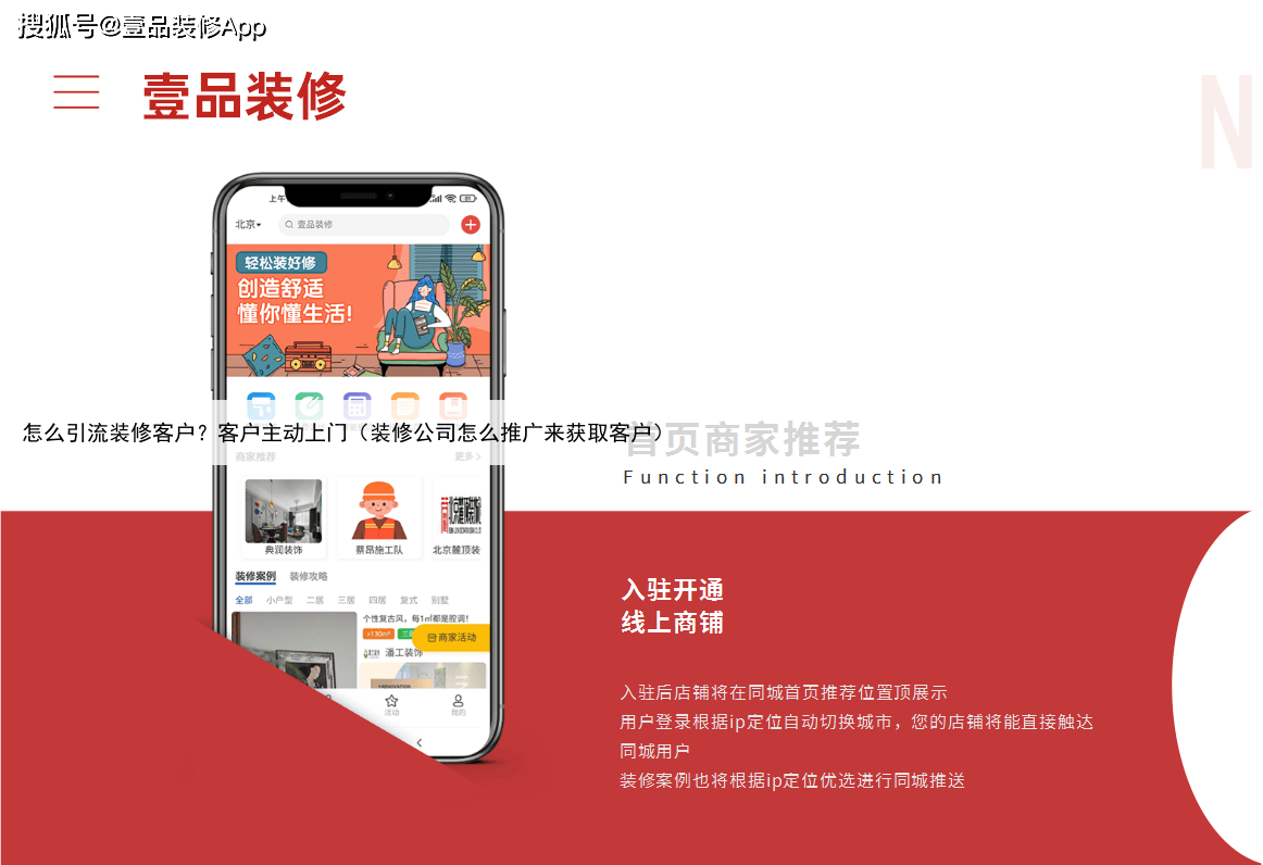 一、线上精准引流:低成本锁定高意向客户1、入驻垂直装修平台,借力智能派单系统 壹品装修平台通过AI算法分析用户200+维度标签(预算/户型/风格偏好),实现订单精准匹配,签约转化率提升40%其核心优势包括: 。