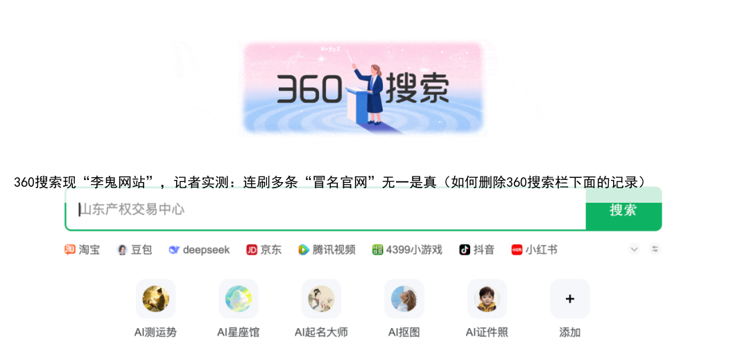 360搜索现“李鬼网站”,记者实测:连刷多条“冒名官网”无一是真(如何删除360搜索栏下面的记录)