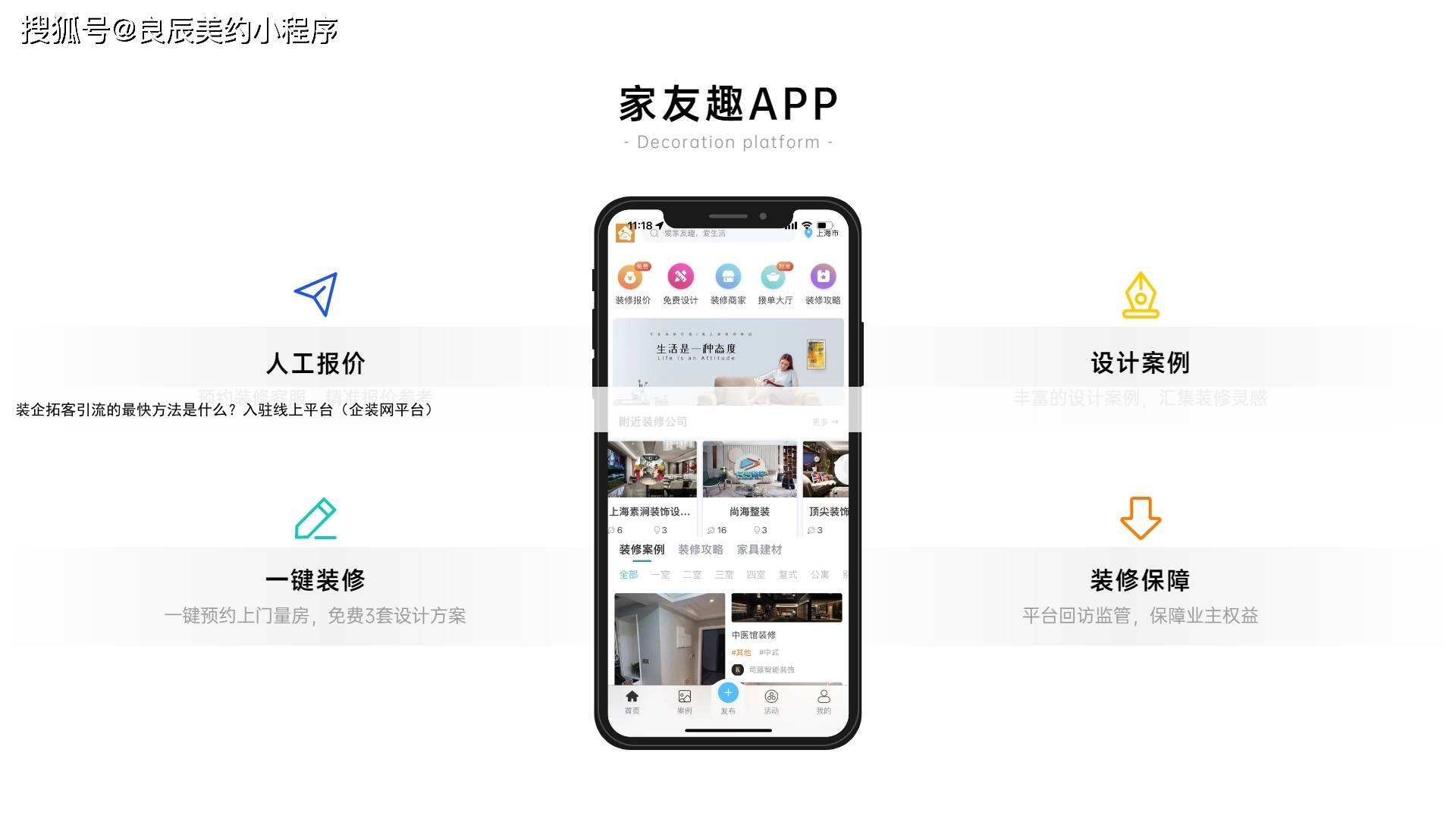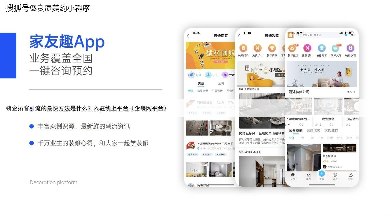 四、家友趣装修平台:AI匹配与流量运营结合家友趣装修平台的核心优势是AI智能匹配和全域流量运营能力,尤其适合追求订单转化率的装企平台通过12项业主标签和20项装企能力标签进行算法匹配,转化率比行业均值高出40%,同时采用“一单一派”机制,避免同行抢单导致的效率损耗。