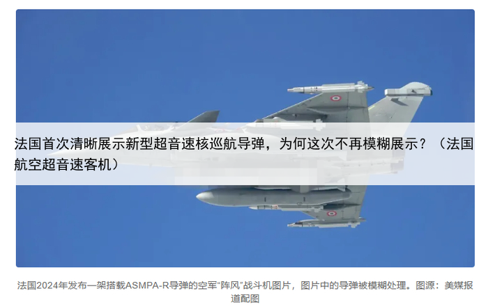 一个直接的原因是,它已经服役了模糊处理通常用于保护仍在测试或未公开的尖端武器技术细节——弹体曲线进气口面积尾舵展弦比全是情报界最爱,模糊处理等于给潜在对手叠一层解密DEBUFF 一旦武器正式列装部队,成为常备力量,其存在本身就不再是秘密,保密边际收益递减,欧洲安全形势吃紧,巴黎需要让盟友以及对手目测自己的核板凳深度。