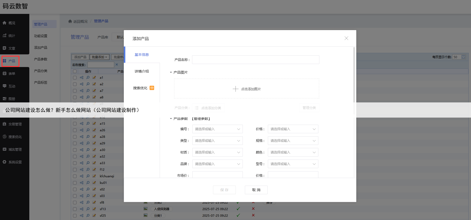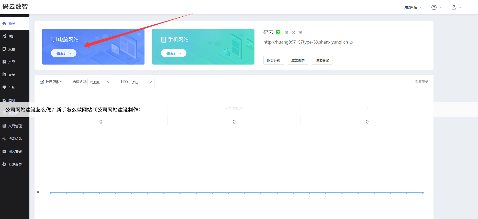 公司网站建设流程,0代码如何创建网站一、网站制作流程步骤:第一步:选择一自助建站平台百度搜索【码云数智】,在【码云数智】自助建站平台注册账号,产品类型选择-企业网站