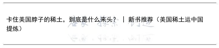 卡住美国脖子的稀土,到底是什么来头? | 新书推荐(美国稀土运中国提炼)