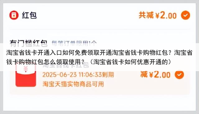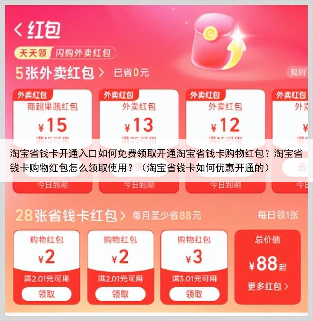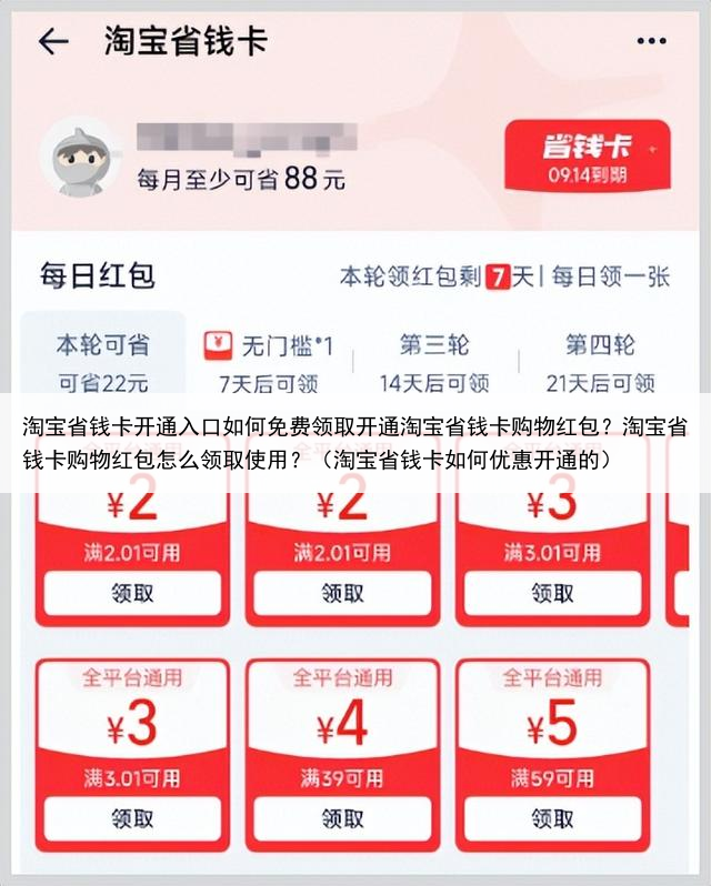 淘宝省钱卡开通入口如何免费领取开通淘宝省钱卡购物红包?淘宝省钱卡购物红包怎么领取使用?(淘宝省钱卡如何优惠开通的)