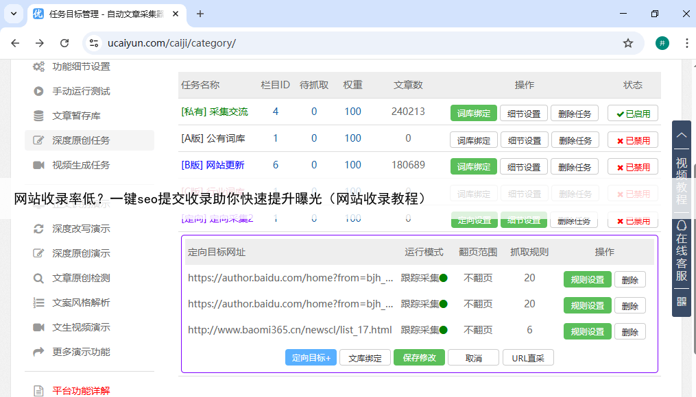 最关键的是,他开启了“原创任务状态”,设定期望的文章长度,并开启了“热点植入”功能。一键seo提交收录怎样保证内容质量