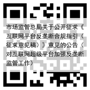 市场监管总局关于公开征求《互联网平台反垄断合规指引(征求意见稿)》意见的公告(对互联网超级平台加强反垄断监管工作)