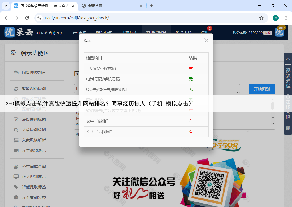 SEO模拟点击软件真的有效吗张明远是我们团队中的SEO优化师,去年三月,他负责的公司官网在百度搜索结果中始终徘徊在第三页面对业绩压力,他开始研究各种"黑帽"技术,最终把希望寄托在了一款声称能快速提升排名的SEO模拟点击软件上。