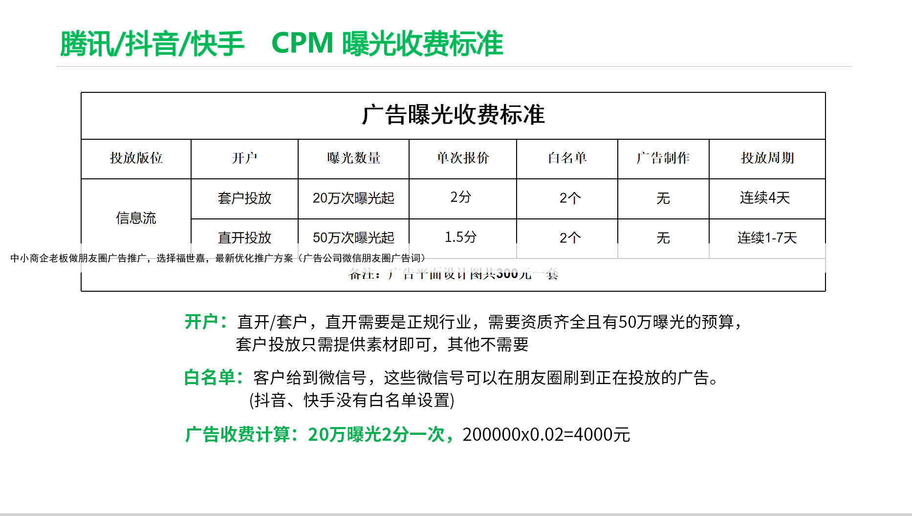 中小商企老板做朋友圈广告推广,选择福世嘉,最新优化推广方案(广告公司微信朋友圈广告词)