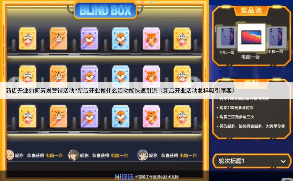在盲盒抽奖中,用户需要购买一个定价相对较低、外表看不出具体内部内容的盲盒,其中会随机包含一些商品或者优惠券等奖励用户只能通过打开盲盒才能了解自己所获得的奖励,从而增加了抽奖的趣味性和期待感盲盒抽奖除了满足用户好奇心和收藏欲望之外,也可以促进消费者对品牌的关注度和消费意愿,同时还可以帮助品牌商打造独特的营销策略和形象。