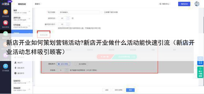 2.高级设置① 奖品设置:按名次设奖品,可添加现金红包,或实物奖品每轮游戏中可添加多种奖品② “参与条件限制”按名次限制,或者按分组限制,分组内人员可按照设置参与互动