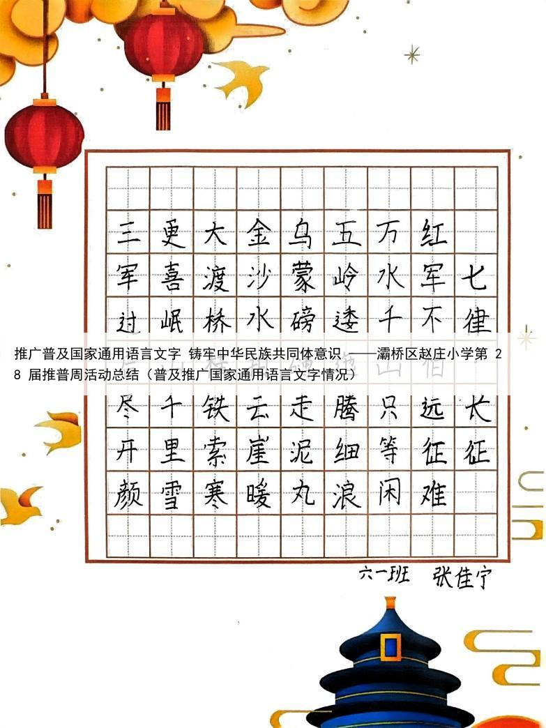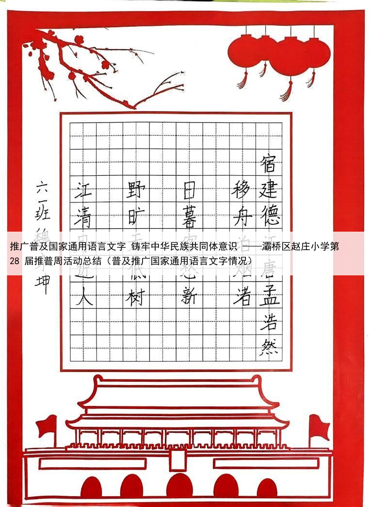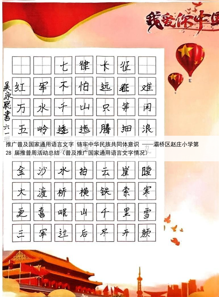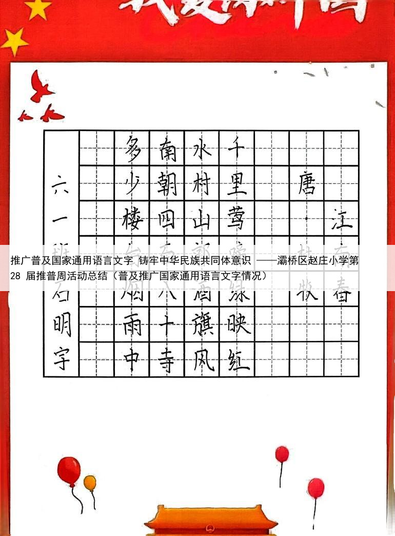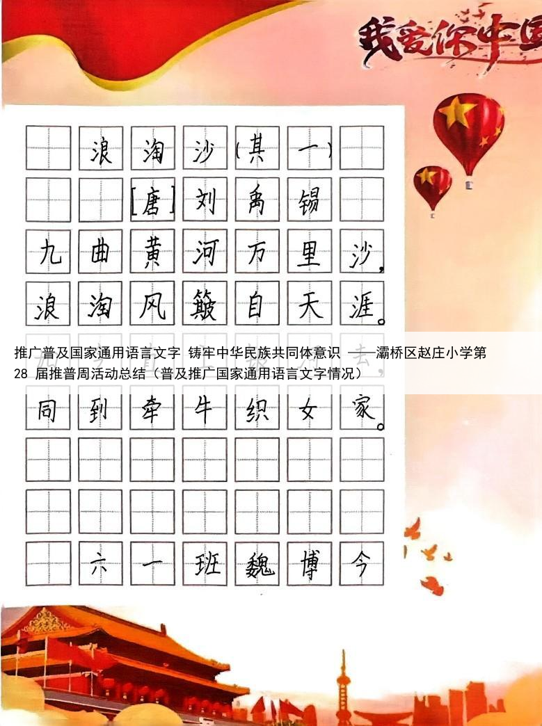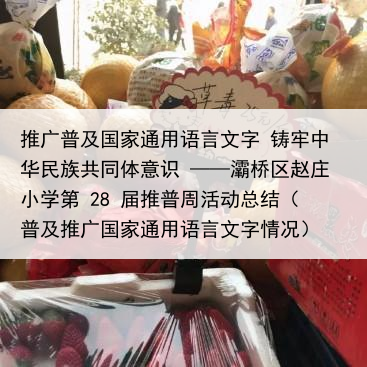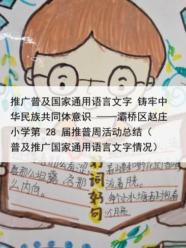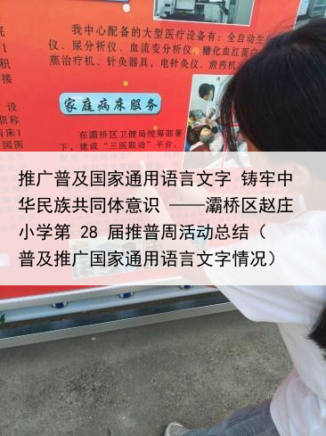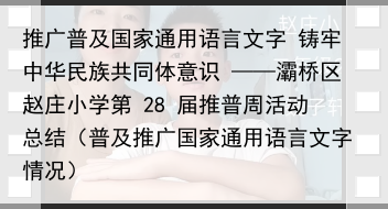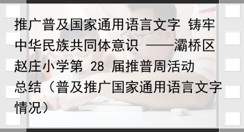 推广普及国家通用语言文字 铸牢中华民族共同体意识 ——灞桥区赵庄小学第 28 届推普周活动总结(普及推广国家通用语言文字情况)