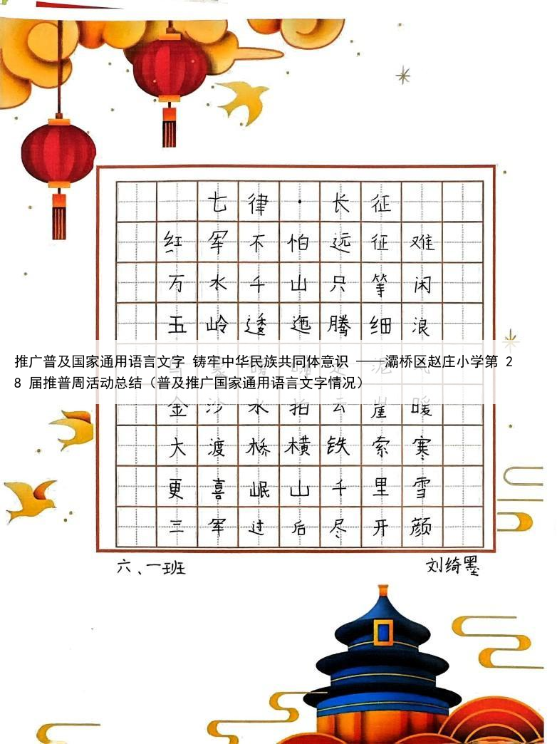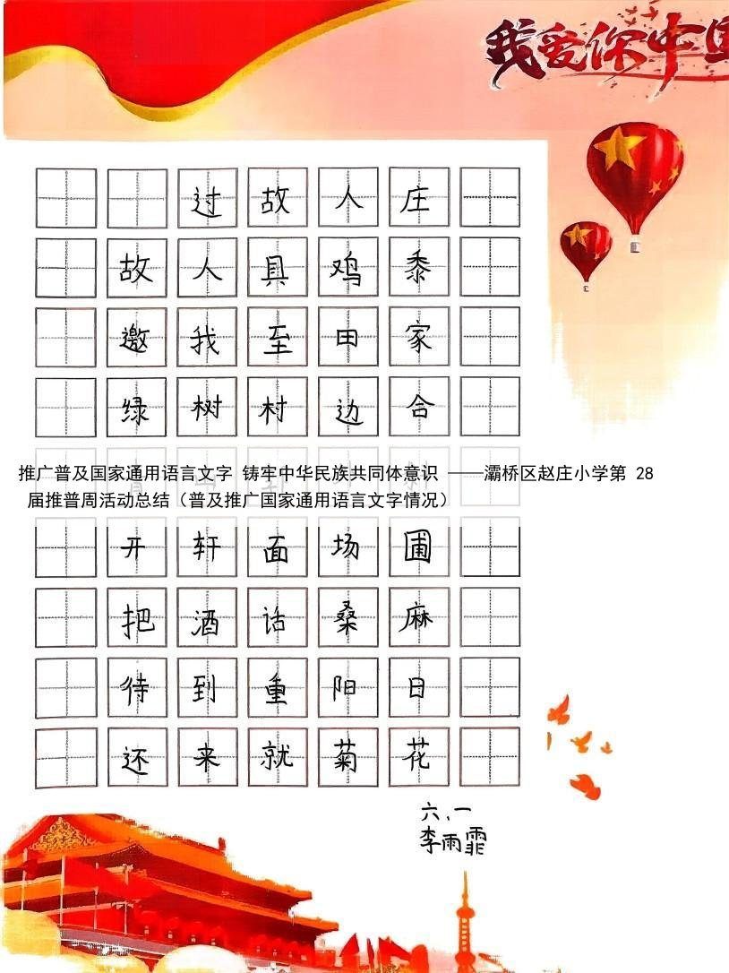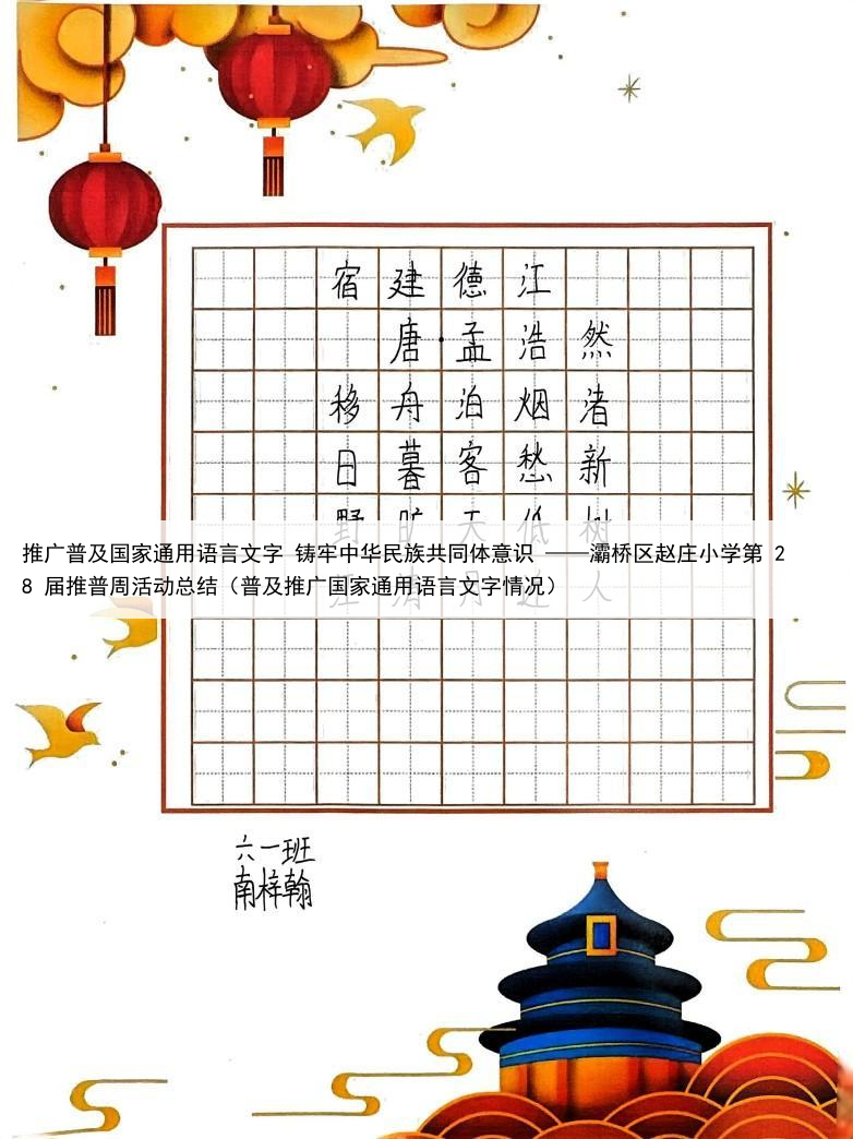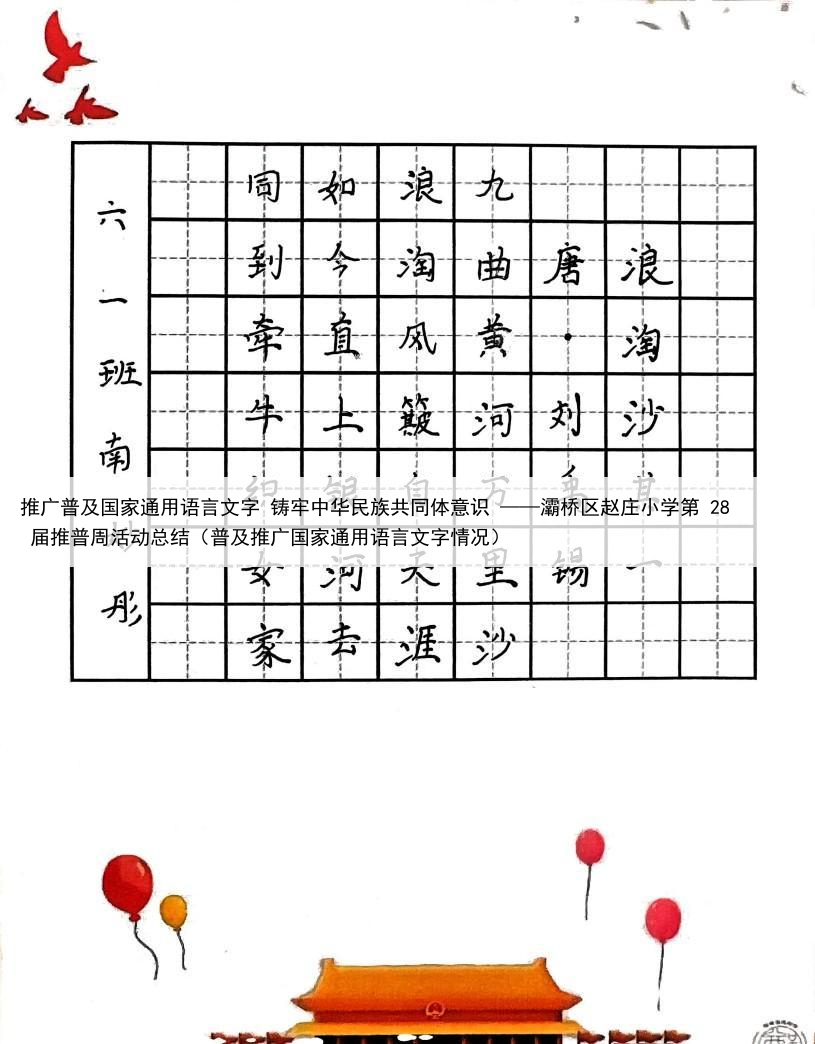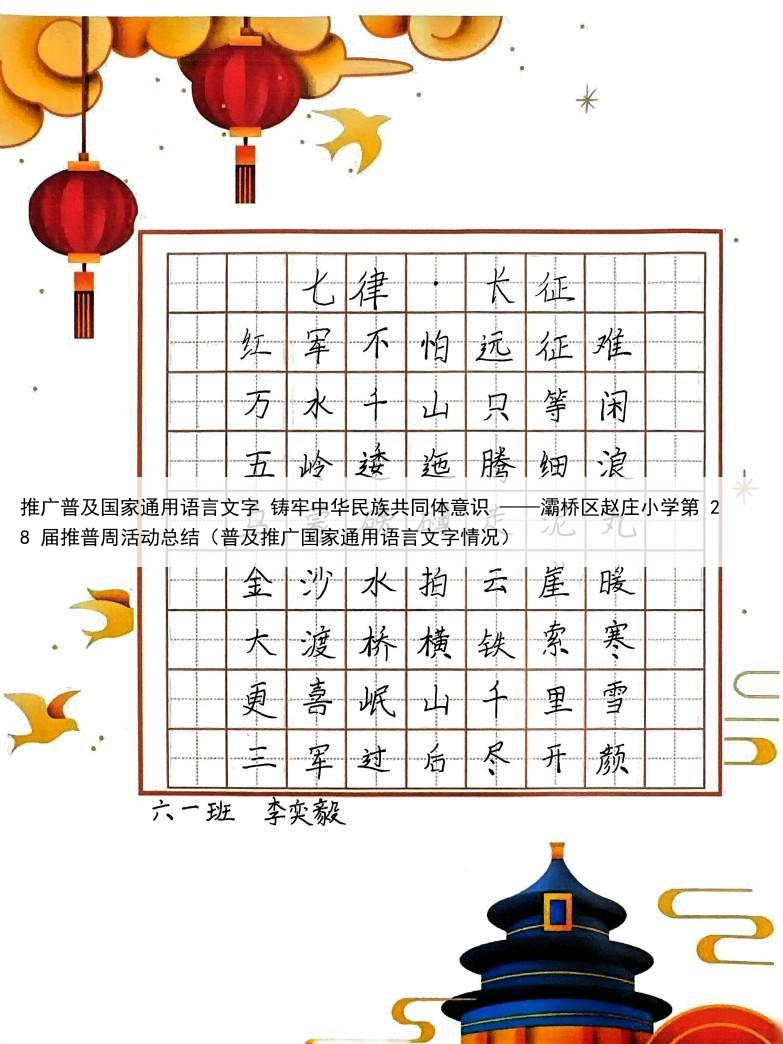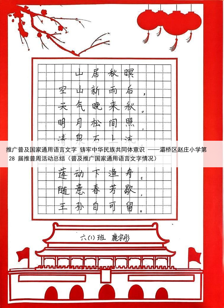 推广普及国家通用语言文字 铸牢中华民族共同体意识 ——灞桥区赵庄小学第 28 届推普周活动总结(普及推广国家通用语言文字情况)