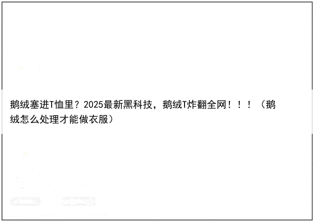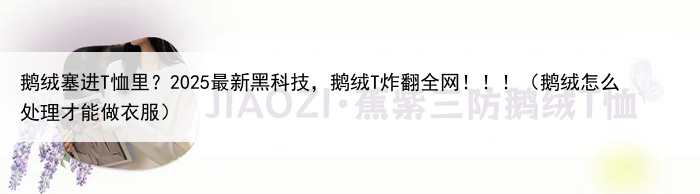 鹅绒塞进T恤里?2025最新黑科技,鹅绒T炸翻全网!!!(鹅绒怎么处理才能做衣服)