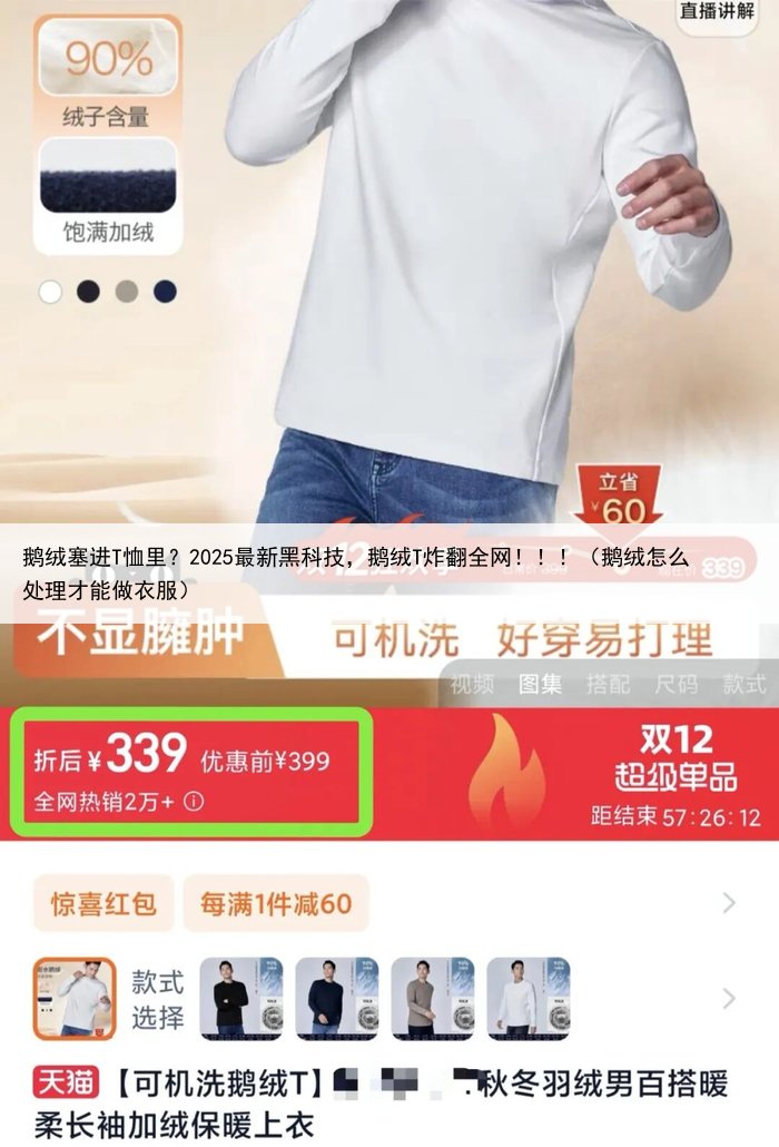把羽绒服的保暖芯塞进 T 恤里,轻便得像没穿,暖得能抗寒潮,刚试穿就忍不住喊:这才是秋冬穿搭的 “作弊神器”!让你在这个冬天,内搭一件就够鹅绒T 真的很懂你 看对比图⬇️