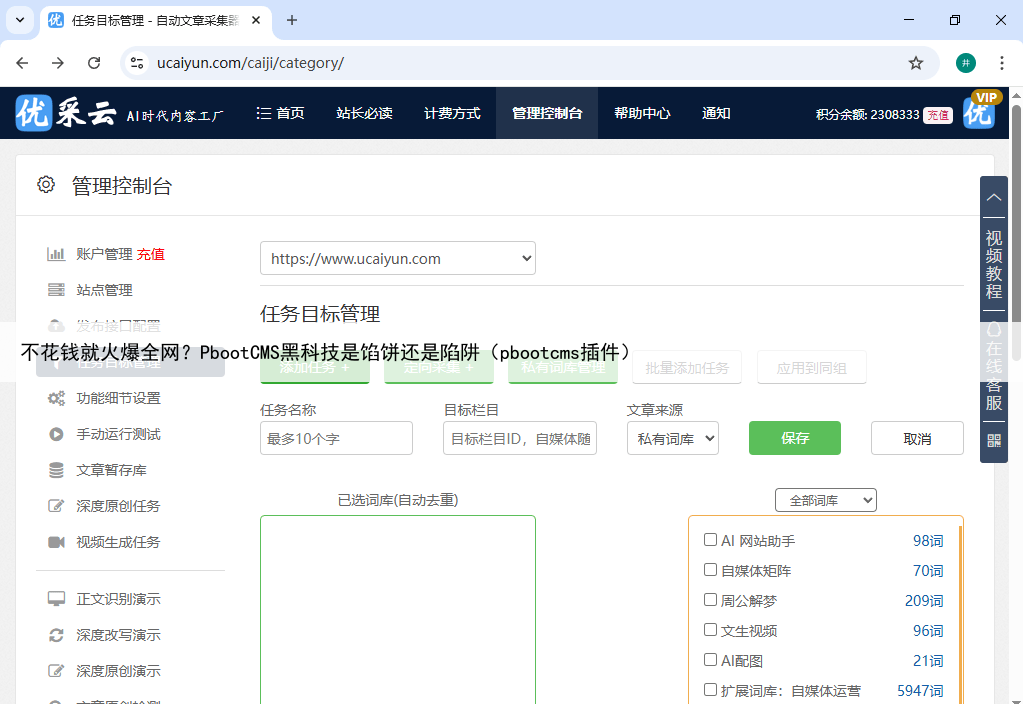 不花钱就火爆全网?PbootCMS黑科技是馅饼还是陷阱最近我发现网上一款号称"一键引爆社交圈"的PbootCMS文章群发软件引起热议,作为一个关注科技行业的观察者,我深入了解后发现背后暗藏玄机。