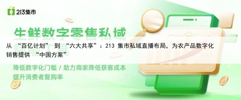 从 “百亿计划” 到 “六大共享”:213 集市私域直播布局,为农产品数字化销售提供 “中国方案”