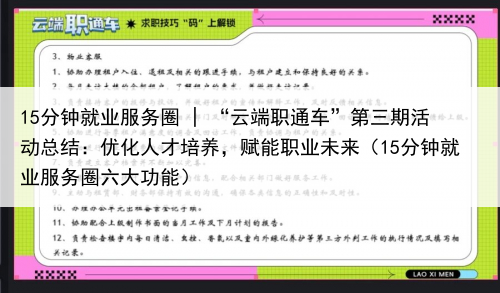 15分钟就业服务圈 | “云端职通车”第三期活动总结:优化人才培养,赋能职业未来(15分钟就业服务圈六大功能)