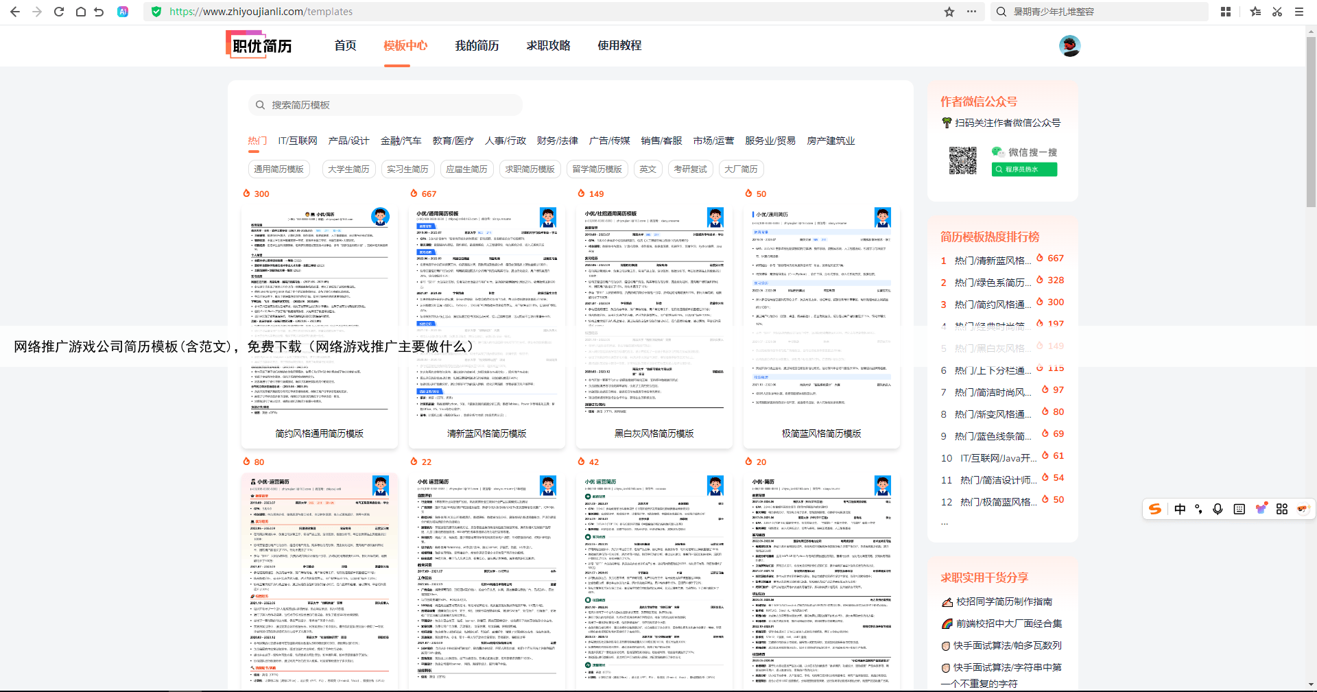 网络推广游戏公司简历模板(含范文),免费下载(网络游戏推广主要做什么)