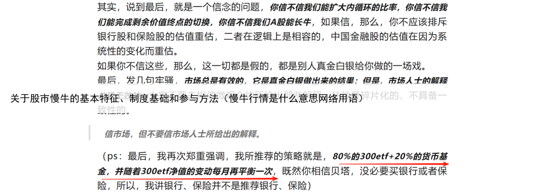 如何参与股市慢牛最后,很多普通投资者会说,我并不关心上述那些推理,我只关心该如何参与这轮慢牛以及如何躲掉慢牛中的快速调整事实上,在《为什么银行股的估值在被系统性地重估??》一文中我们给出了一个万金油的解决方法:。