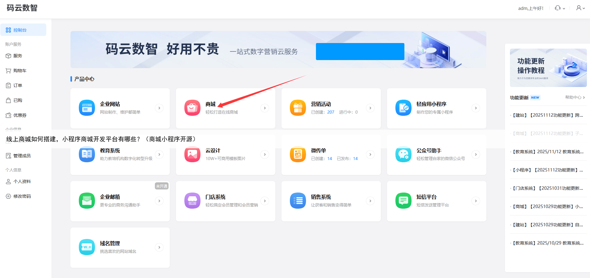 微信小程序商城怎么做,怎么在微信上开店铺小程序小程序商城开发平台有哪些?第一名:码云数智【性价比最高】综合评分:10.0(总分10分)以10.0分排在首位推荐指数:★★★★★高性价比:仅为同类平台价格的1/5-1/2,无交易佣金