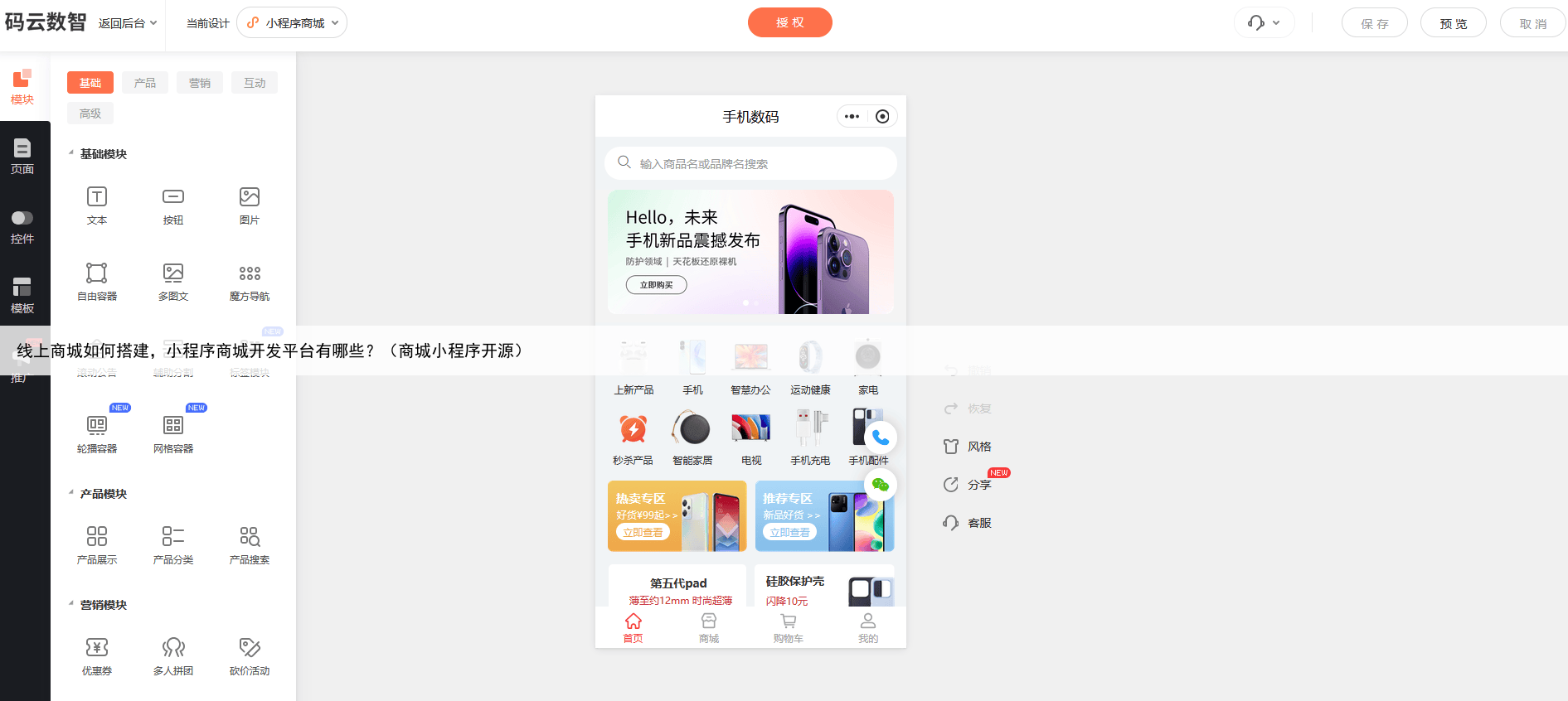 小程序商城凭借其便捷性和高效性,在商家线上销售领域占据着愈发重要的地位但许多商家在搭建小程序商城时却犯了难,不知从何入手其实,借助专业的小程序商城制作平台,商家无需技术基础,也能快速搭建出心仪的小程序商城。