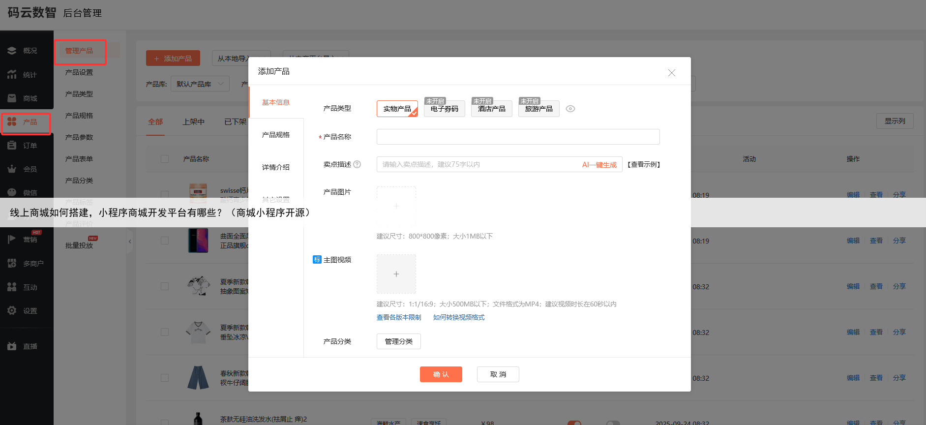 好,另外的话我们还可以对这个商品进行这种分类的管理,然后方便用户去快速地查找和浏览商品现在不管是什么行业,不管你是做什么生意的,线上销售已经成为了每一个商家不可或缺的一个板块对于中小企业商家来说的话,线上销售,尤其是做我们私域微信小程序的,是已经是作为我们线上销售一个非常重要的渠道。
