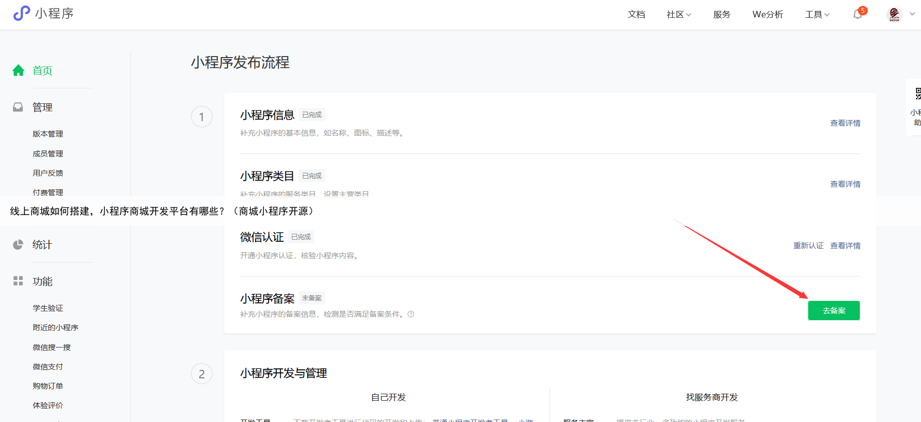 第七步:进行小程序备案