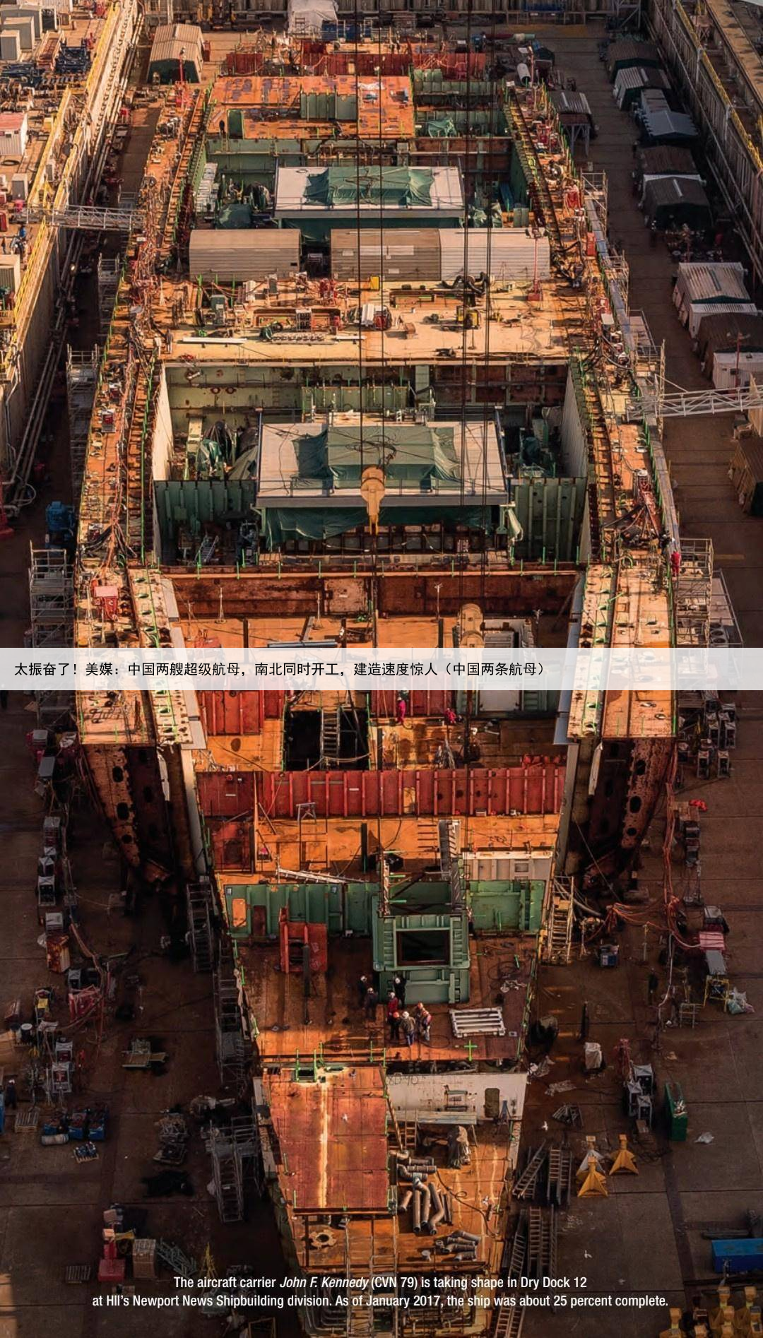 太振奋了!美媒:中国两艘超级航母,南北同时开工,建造速度惊人(中国两条航母)