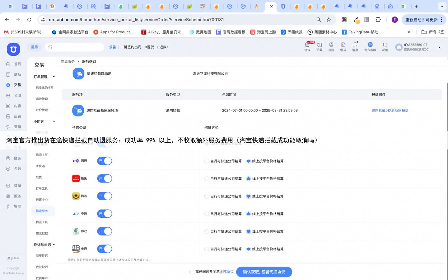淘宝官方推出货在途快递拦截自动退服务:成功率 99% 以上,不收取额外服务费用(淘宝快递拦截成功能取消吗)