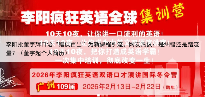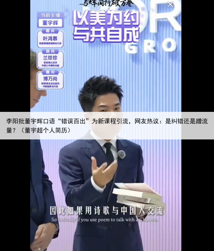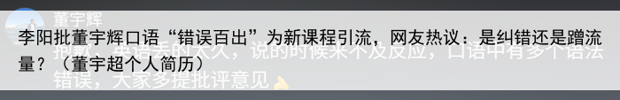 李阳批董宇辉口语“错误百出”为新课程引流,网友热议:是纠错还是蹭流量?(董宇超个人简历)
