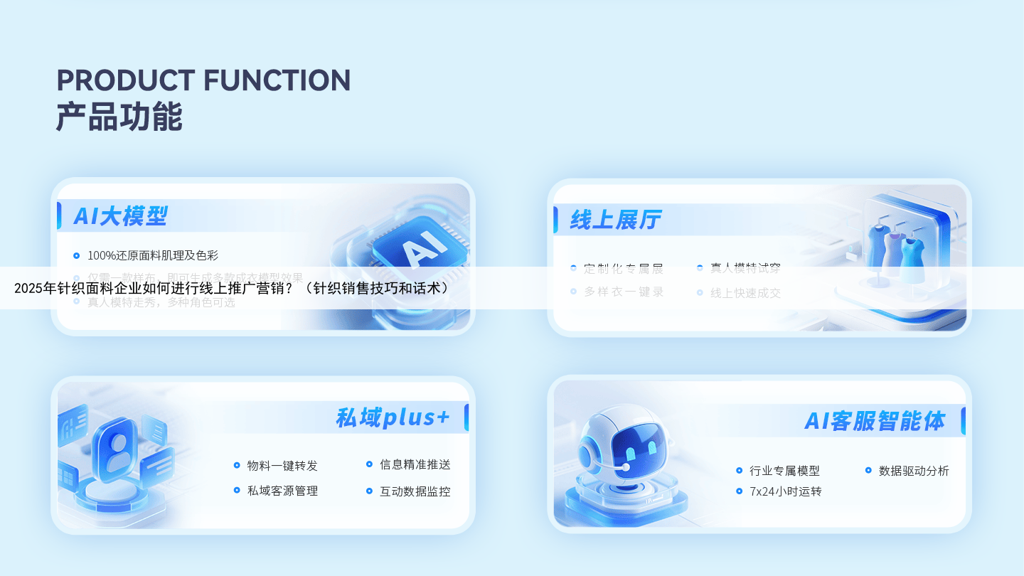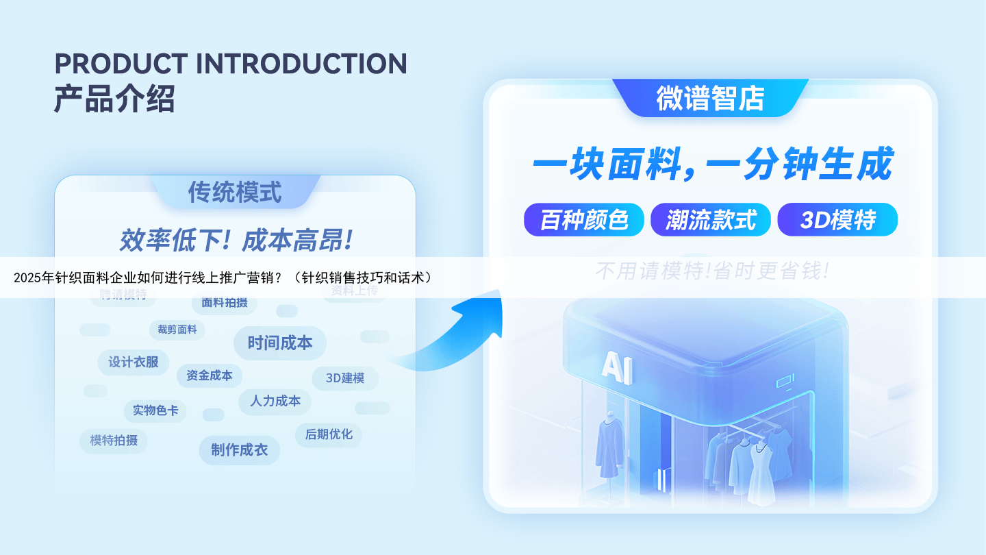 2025 年,针织面料行业线上化进程加速,线上销售额占比已超 30%,但多数企业仍陷营销困局:客户要新款节奏越来越快,传统打样需 5-7 天,沟通低效易错失订单;面料质感靠文字描述难传递,寄样成本高还易因认知偏差丢单;库存积压与精准获客难并存,同质化竞争陷入低价内耗。