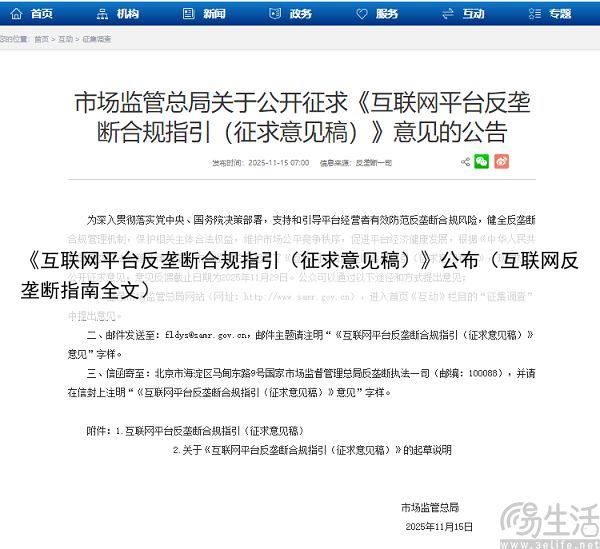 《互联网平台反垄断合规指引(征求意见稿)》公布(互联网反垄断指南全文)