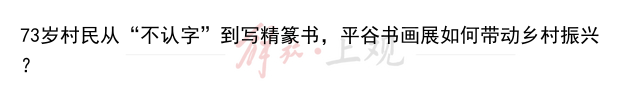原标题:《73岁村民从“不认字”到写精篆书,平谷书画展如何带动乡村振兴?》 栏目主编:樊江洪 来源:作者:解放日报 余晨扬