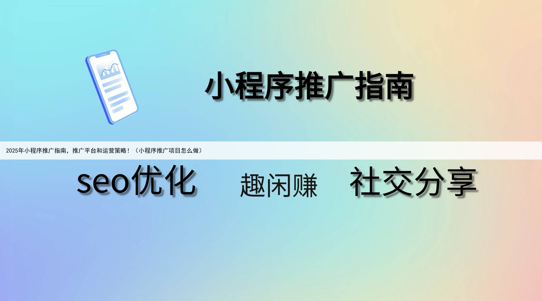 2025年小程序推广指南,推广平台和运营策略!(小程序推广项目怎么做)