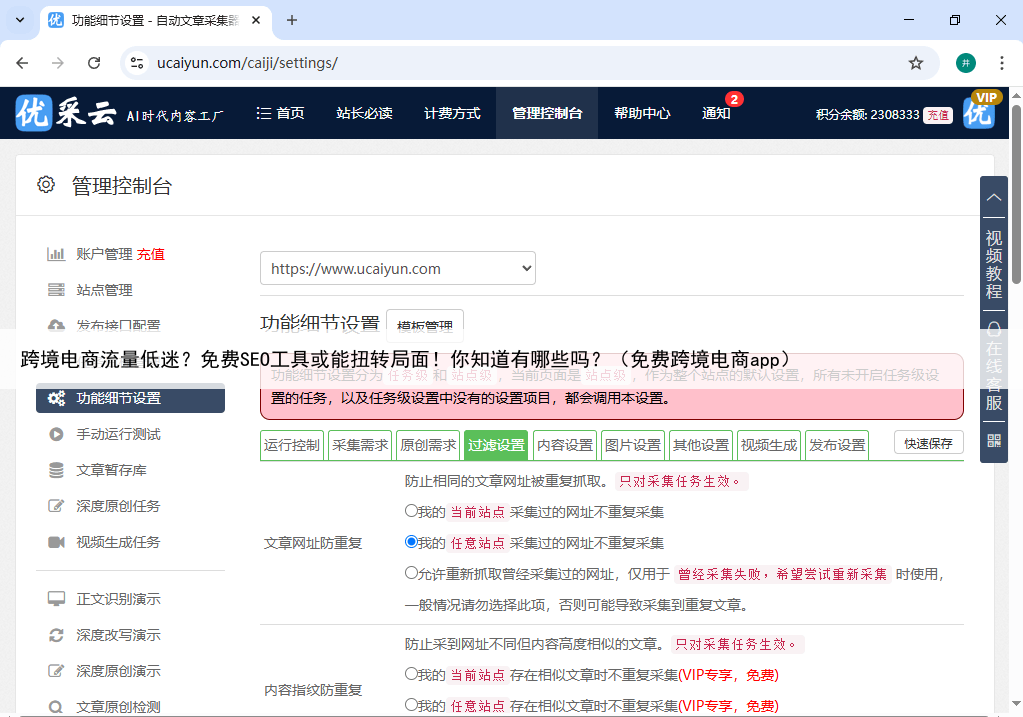 现在张明轩的独立站已经实现了稳定盈利,而他投入的仅仅是学习这些工具的时间成本他告诉我,接下来还计划尝试优采云这样的AI内容工厂,进一步实现内容获取、加工和发布的全流程自动化,以节省更多时间专注于产品开发。