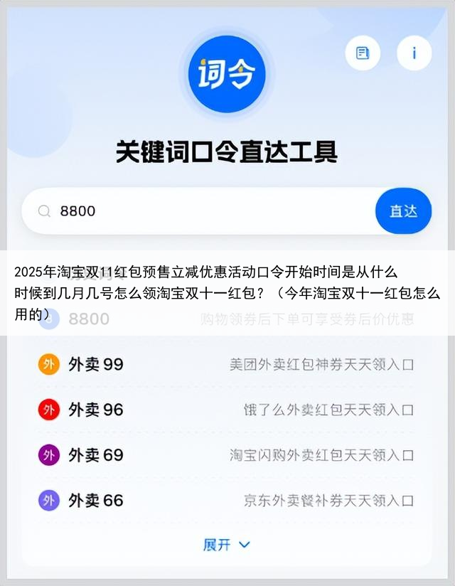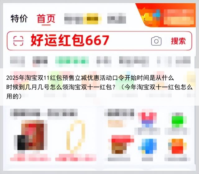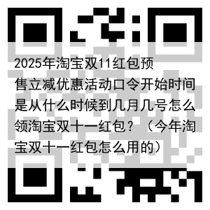 2025年淘宝双11红包预售立减优惠活动口令开始时间是从什么时候到几月几号怎么领淘宝双十一红包?(今年淘宝双十一红包怎么用的)