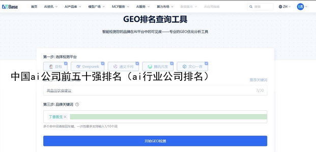 因此,要衡量GEO效果,不能沿用传统排名工具,而需要能模拟AI生成过程、检测内容是否被AI“选中”的专用工具这正是AI排名查询工具的价值所在AIBase GEO排名查询工具:专为生成引擎优化设计在众多尝试适配GEO的工具中,AIBase平台推出的GEO排名查询工具 (访问路径:AIBase → 工具 → GEO排名查询)值得关注。