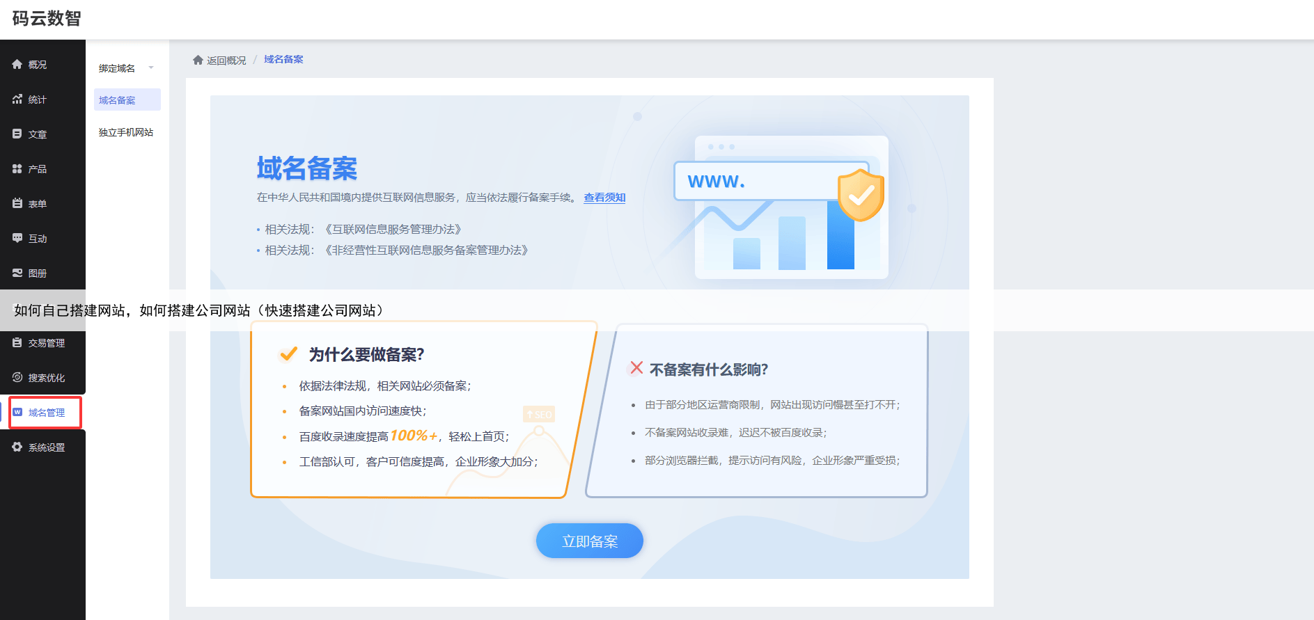 第七步:网站备案