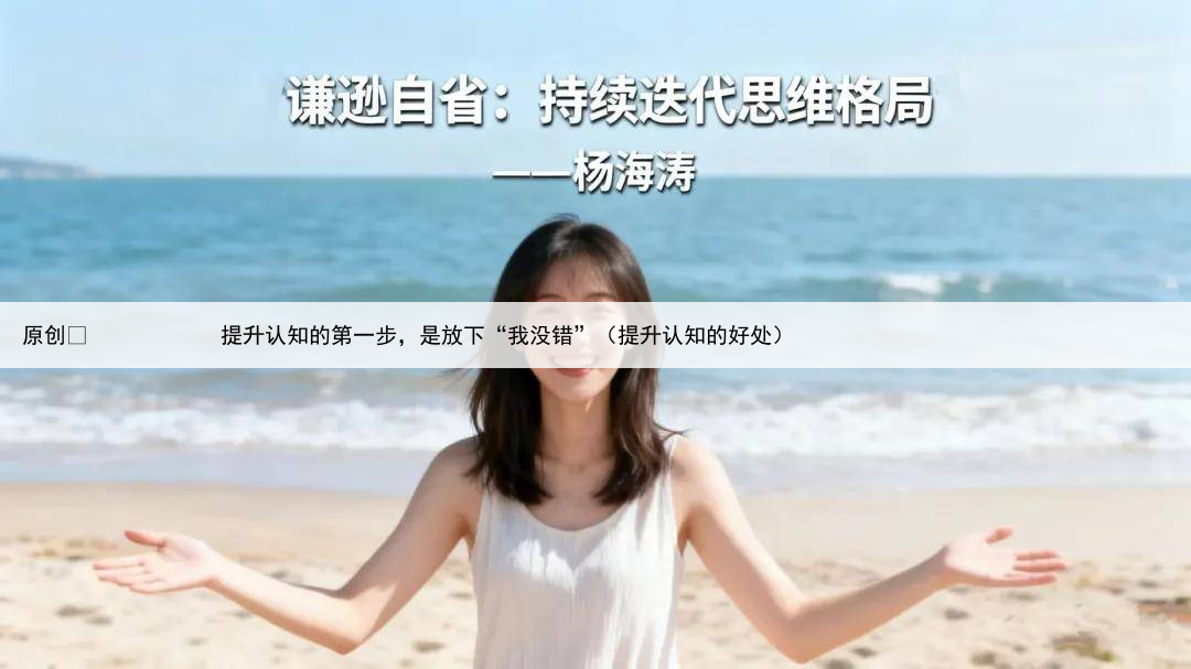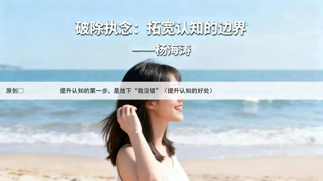文丨杨海涛(潜能训练导师)在人生的漫漫征途中,我们都渴望不断提升认知,拓宽生命的广度与深度然而,许多人却在这条道路上徘徊不前,究其根源,往往是被“我没错”的执念所束缚这种固执,如同厚重的枷锁,禁锢了我们的思维,让我们在认知的狭小天地里原地踏步。
