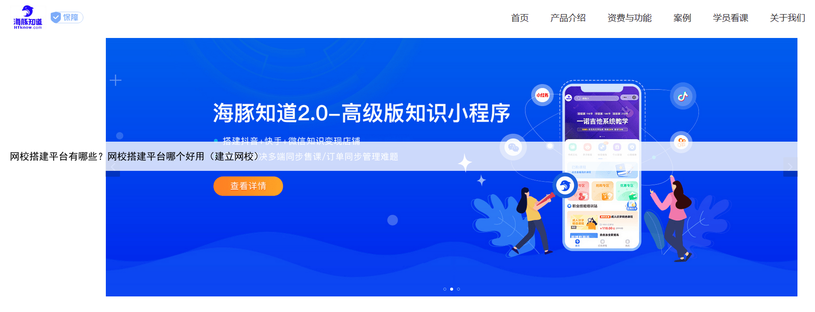 5、海豚知道价格:6999元/年推荐指数:★★★☆☆综合评分:9.2(总分10分)营销功能单一,缺乏社交裂变玩法,流量转化较弱