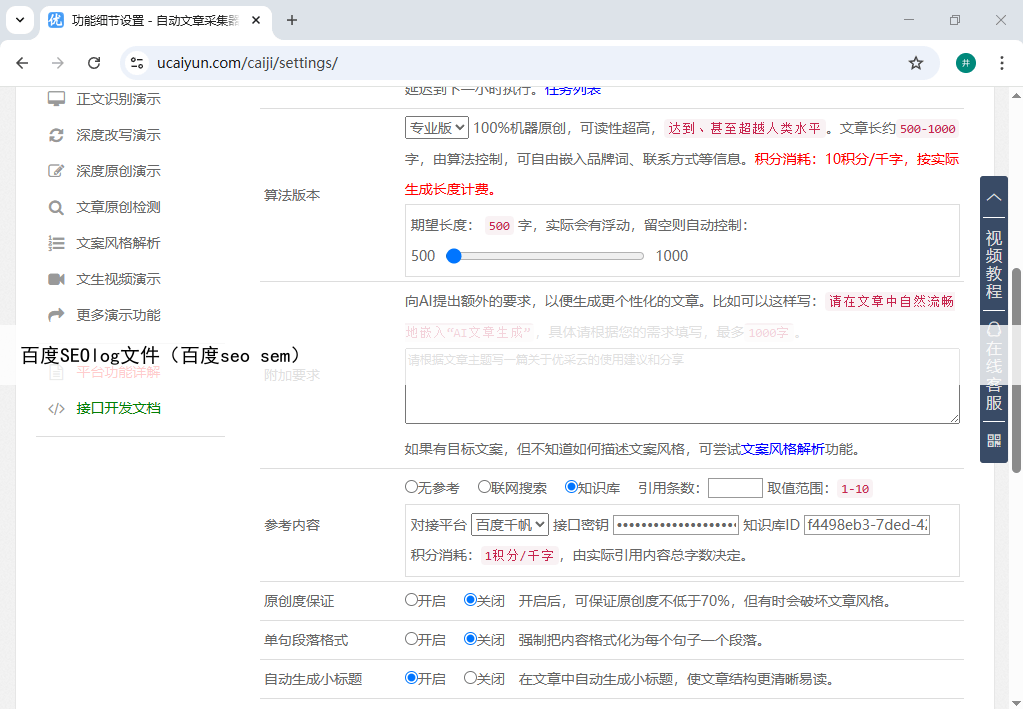 尤为值得一提的是,优采云的日志分析模块与其“任务目标”和“原创生成”系统无缝衔接分析结果会直接反馈给内容AI,指导其调整内容采集和生成策略如果蜘蛛频繁访问某个主题但内容匮乏,系统会自动加大该主题下的内容生产量;如果发现某些优质内容未被蜘蛛有效抓取,系统则会通过“自动内链”、“关键词插入”等功能优化内部链接结构,并为这些页面主动通过“百度主动推送”接口提交链接,极大地提升了内容的收录效率。