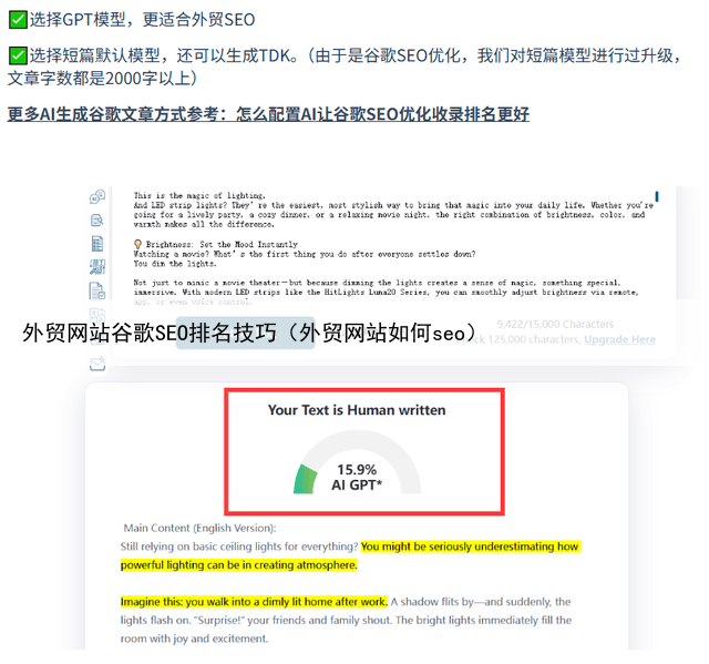 文章太短不容易被谷歌收录,因为内容太少,谷歌不容易理解如果你的竞争对手懒得写长文,而你愿意写,那你的文章被收录的机会就更大如果原创太难,可以用“147SEO”、“西瓜AI”这类工具写作,他们写作的文章比较符合SEO优化,有标准的TDK还有谷歌喜欢的SEO结构。