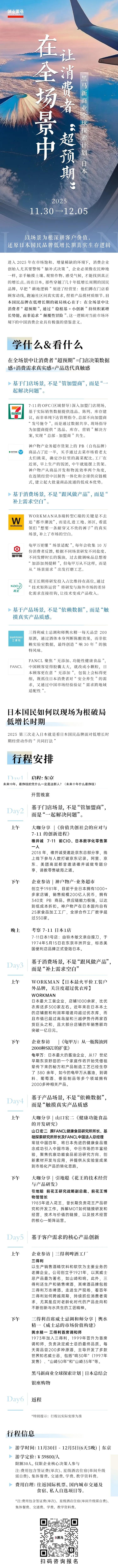 11月30日-12月5日,我们将带着黑马的同学们,一起去日本学习:日本品牌穿越周期背后的经营密码共同拆解日本在低欲望、低增长、少子化、高龄化背后,怎样孕育出如此多行业的领军企业?包括大家熟悉的三得利、711、花王、FANCL、神户物产、WORKMAN
