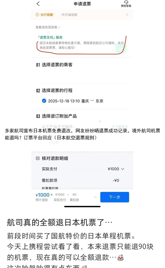 多家航司宣布日本机票免费退改,网友纷纷晒退票成功记录,境外航司机票能退吗?订票平台回应(日本航空退票规则)