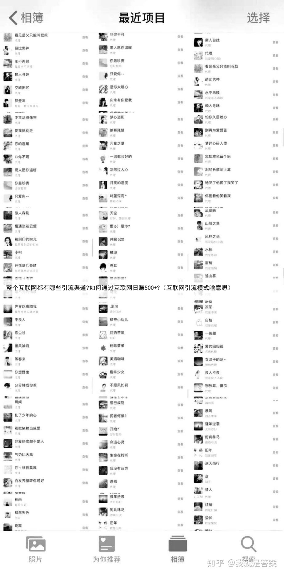 平台大概就这么多,每个平台都有他们的规则,要想去引流,第一件事,先学会怎么用这些平台,接着在这个平台找到别人的引流方法,复制,就这么简单,今天就不细讲了,不管你做哪一个平台的流量,都要学会专注,研究透,然后正确的向人传达你的信息,没有流量你可以来砍我。