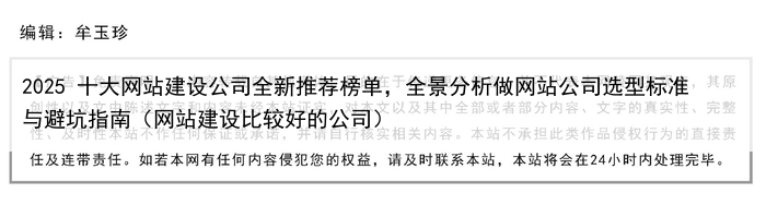 本文基于2025上半年行业报告、工信备案数据、中标公告及第三方信用平台信息,结合十大精选服务商的深度评测,为企业提供一份科学、可信的选型指南,助力精准决策、降本增效 一、网站建设公司选择标准与避坑攻略