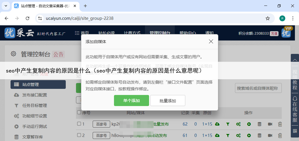 用户可以根据需要设置期望文章长度,还可以选择是否参考网络热点,提高文章热度系统支持开启原创度提升功能,虽然有时可能破坏文章风格,但能最大化提升文章原创度对于已采集的内容,优采云提供了智能AI版和深度改写版两种伪原创模式。